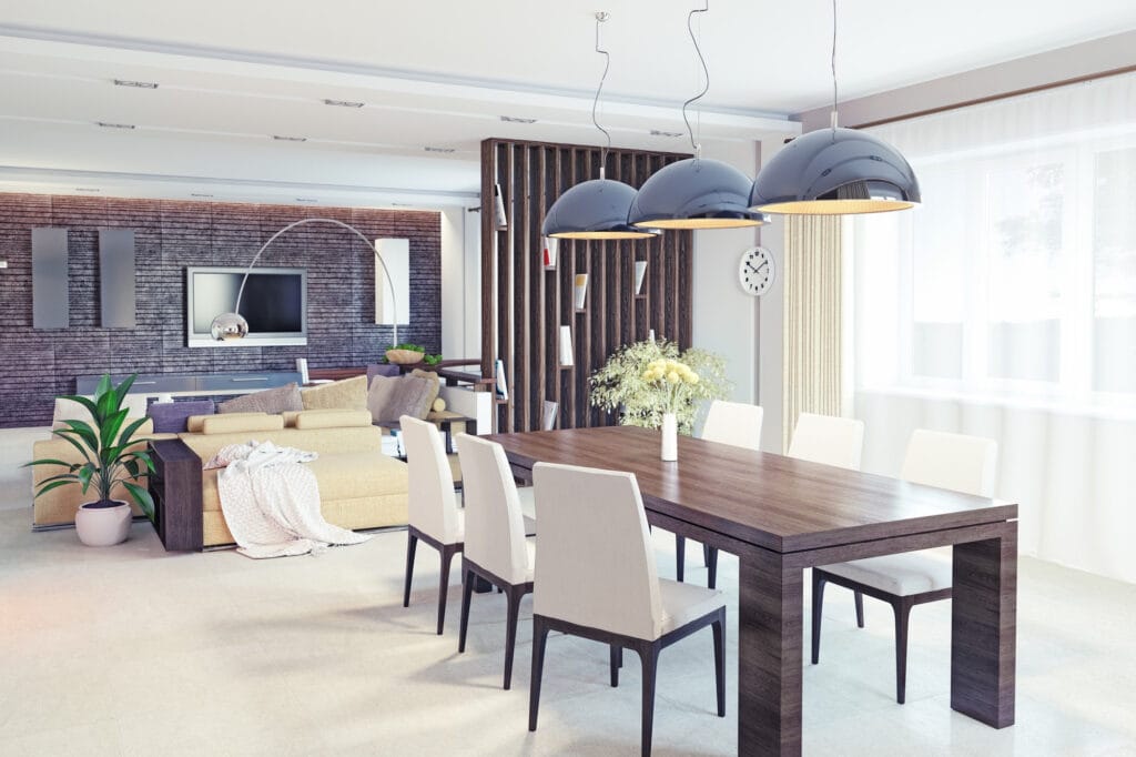 La salle à manger peut aussi accueillir des lampadaires ou des lustres. Ils ajoutent une dimension décorative dans l’aménagement de la pièce. Positionnés stratégiquement, ils créent une ambiance chaleureuse.